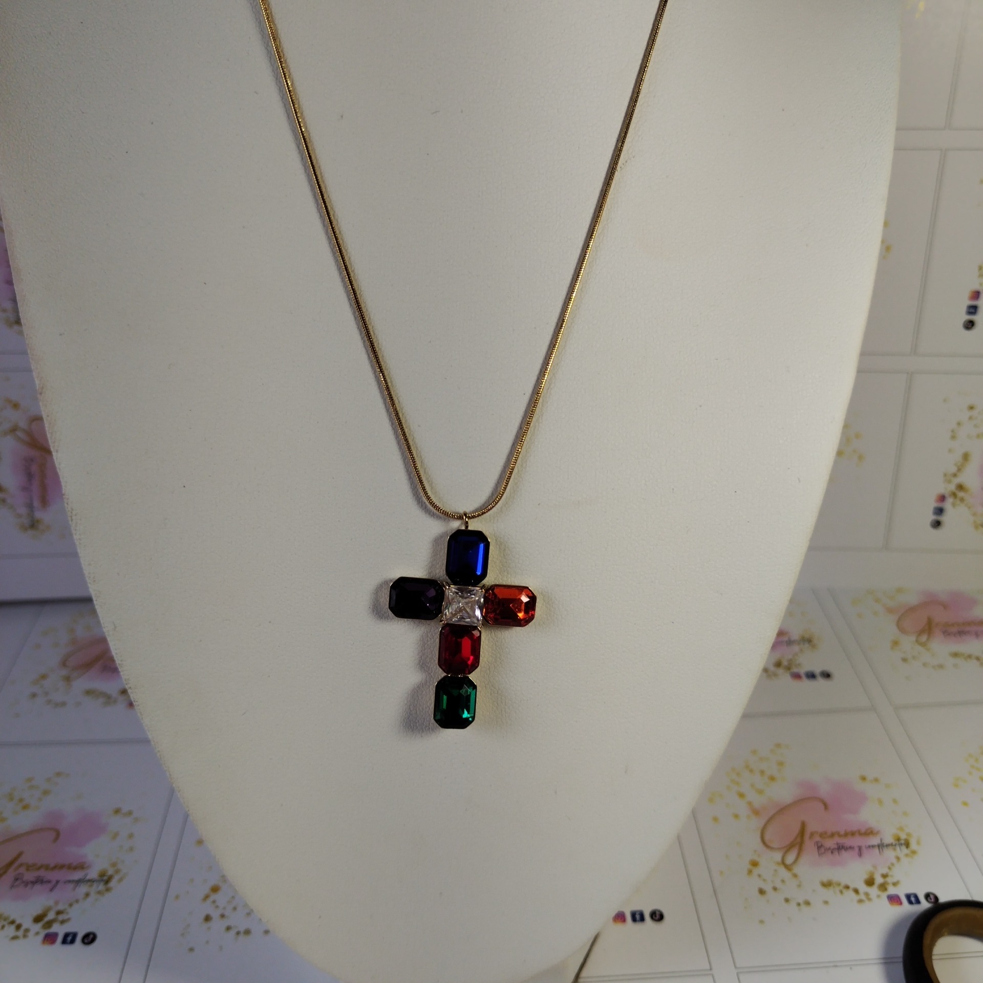 colgante cruz grande piedra colores acero inoxidable chapado oro